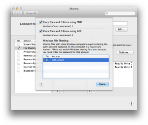 The path must be typed in a certain way into Media Center and XBMC. In my case the generated path was “afp://10.0.10.11″ and “smb://10.0.10.11″. I would type either “afp://10.0.10.11/Shared Videos” or “smb://10.0.10.11/Shared Videos” in my Media Center or XBMC, without quotes. NOTE 1: Some versions of Media Center and XBMC may have difficulties with the Apple File Protocol, but luckily we have the SMB portion. NOTE 2: Replace “Shared Videos” with the name of your folder.